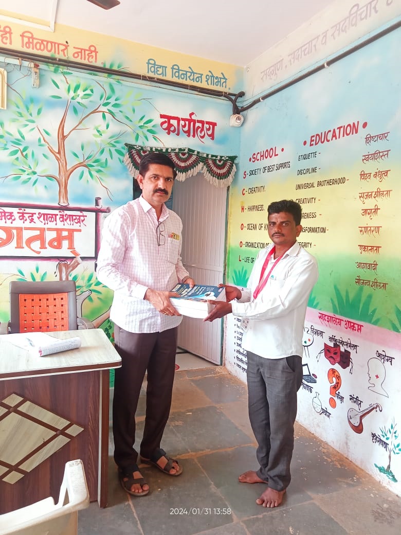 January 2024- Saaraakassh distributed books on competitive exams to 6 Zilla Parishad Schools. Our team member, Shri. Nathu Pardi handing over the books to the school teachers.